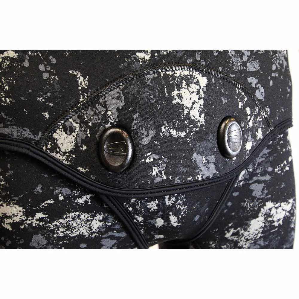 Camo high strength nylon outer / open cell interior.Ergonomic and preformed cut for legs and arms.SCS cuffing on wrists, ankles and hood.PowerTex-type protection on knees.5mm neoprene loading pad with Mesh cover.Beaver tail and bottom jacket braided and lined both sides.